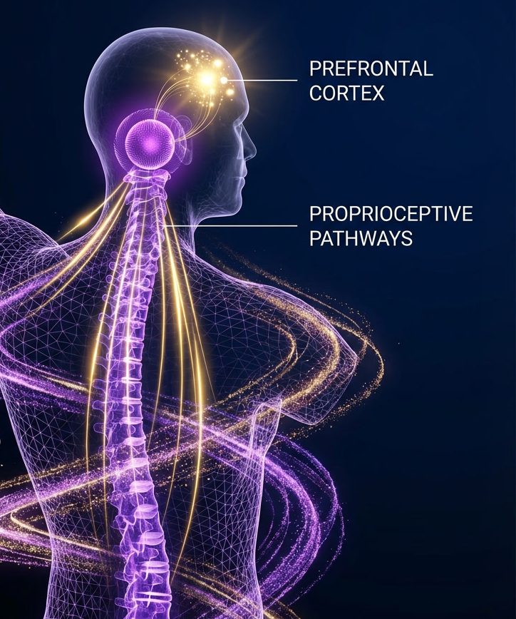 - Safety signals: Rhythmic pressure sends continuous messages up your spine telling your brain "we're safe, grounded, moving with purpose"